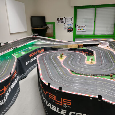 Activité ludique autour de modèles à l'échelle 1/32è de circuits routiers à 4 voies rainurées et électrifiées