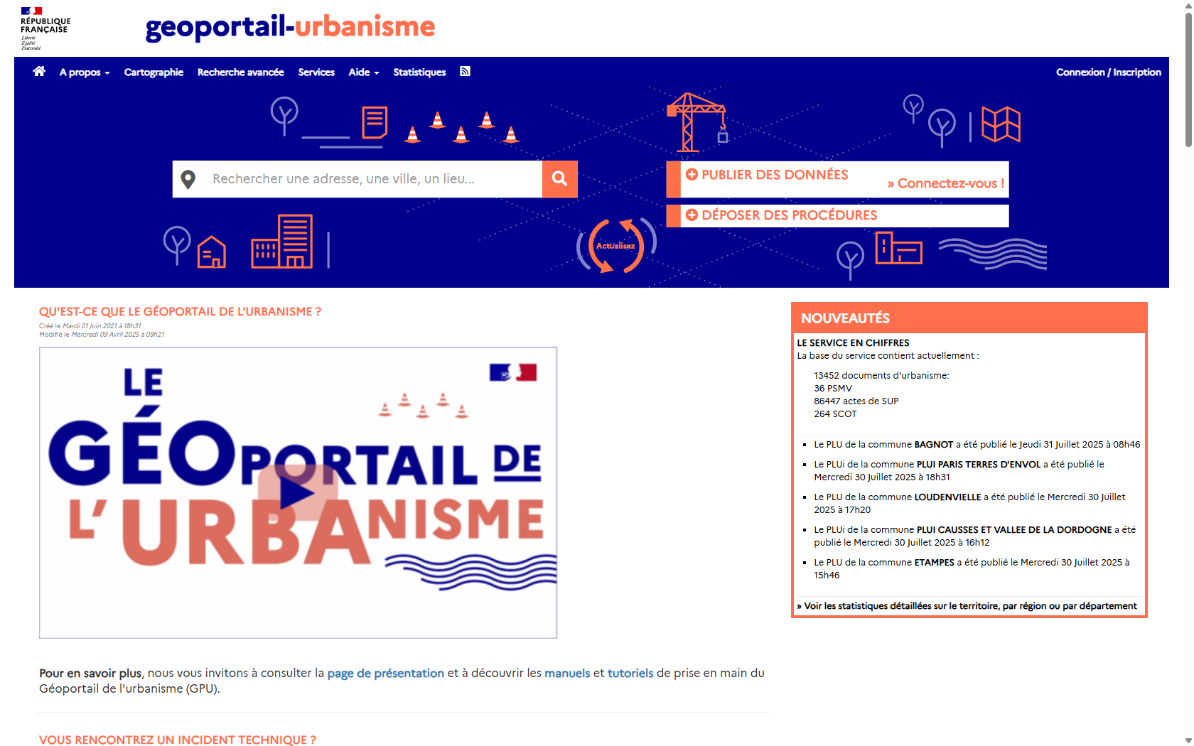 Le Géoportail de l’urbanisme (GPU) donne accès aux réglementations d’urbanisme des territoires.