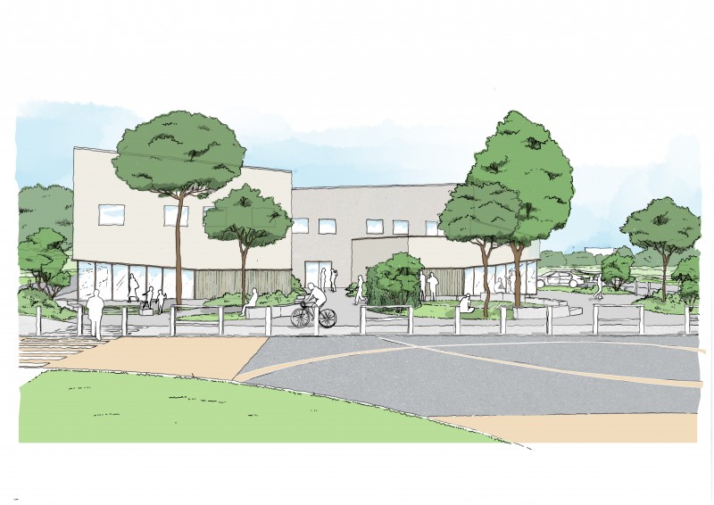 Fondement du plan guide, le parvis du pôle santé sera inaccessible à la voiture, afin de garder la perspective sur le cœur de bourg mais aussi « faire » place.